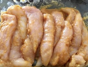 Chicken, vegetables and noodles in a lemon and honey sauce.