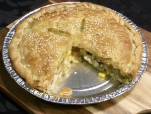 Layers of pasta and vegetable sauce topped with cheesy sauce
