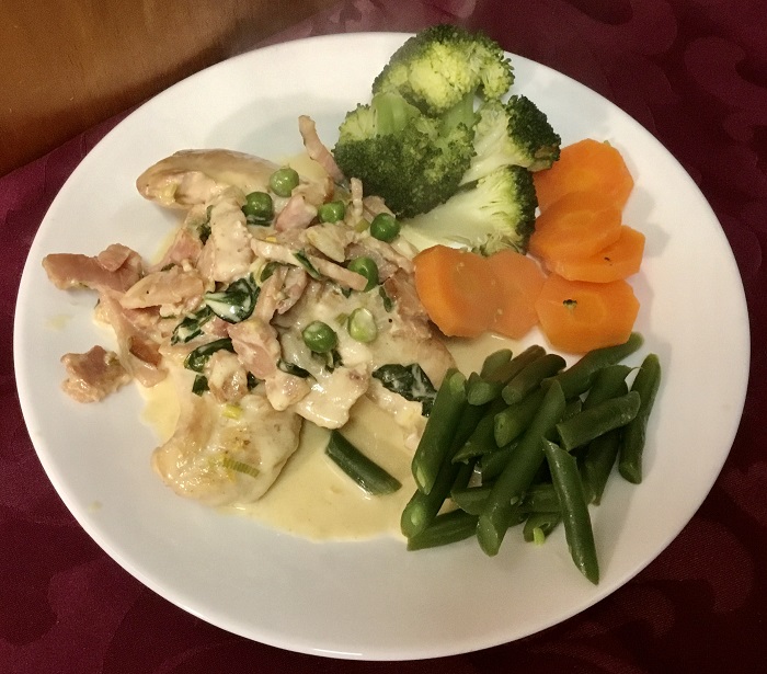 A delicious chicken dish with a creamy bacon sauce.