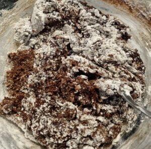 6. Stir in the flour and bicarb soda.