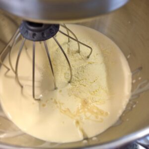 - In a bowl mixing with an electric beater, beat the cream, condensed milk, milk powder and vanilla paste for 3-5 minutes or until it is thick and creamy.