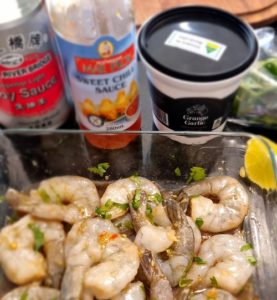 Prawn Skewers Marinated with garlic and Sweet Chilli Sauce