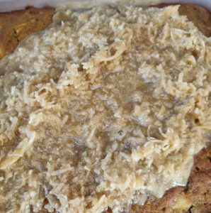 I don’t know where the name came from but Lumberjack Cake is an apple and date cake with a caramelized coconut topping. It is a deliciously moist cake perfect to serve for afternoon tea or even as dessert and it keeps well for 5-6 days.