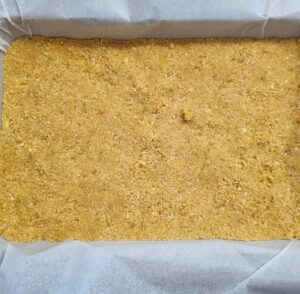- Line a 18cm x 28cm Slice tray with baking paper.
