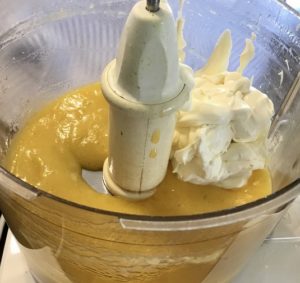 4. With the motor running on the food processor, slowly add gelatine in a steady stream.