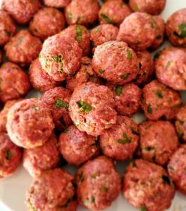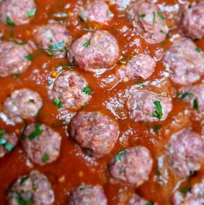 - In a large bowl combine all meatball ingredients and with wet hands gently roll into balls the size of a walnut. Set aside while you make the sauce.