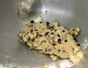 - Add flour, spice and currants, mix well