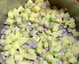 When you are married to a potato farmer potatoes are a staple in our home and I enjoy coming up with new ways to use them in cooking. This soup is of the hearty chunky variety and is very flavoursome.