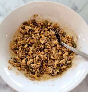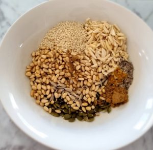 - Place nuts, seeds and spices in a bowl, stir to combine