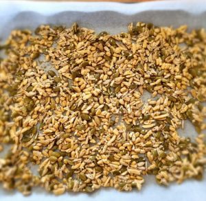 A super crunchy seed and nut mix that is a delicious addition to any leafy salad
