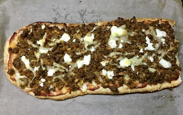 - Spread tomato paste over Turkish bread then top with lamb mixture cook in oven 15 minutes